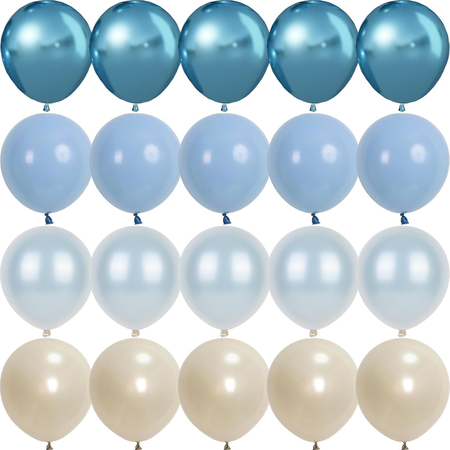 - Premium Quality Latex: Our blue and white balloons are made of high-quality, thickened latex, safe and non-toxic, with no unpleasant smell. These durable light blue and chrome blue latex balloons wonโt pop or deflate easily, ensuring your blue and white birthday decorations last through the whole event.