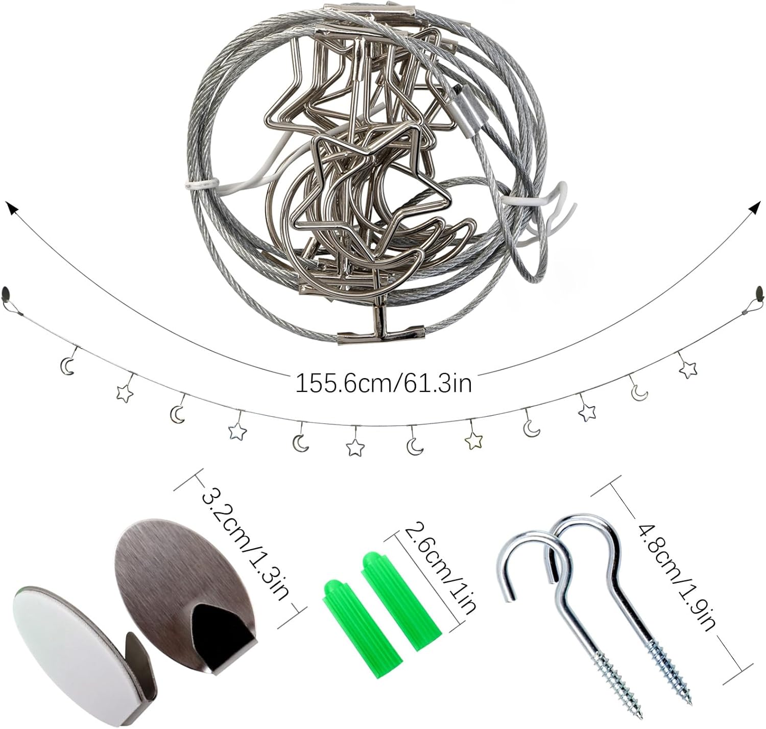 - 【Size】Total hanging photo display string length: 1.55 m/ 5.1 feet.