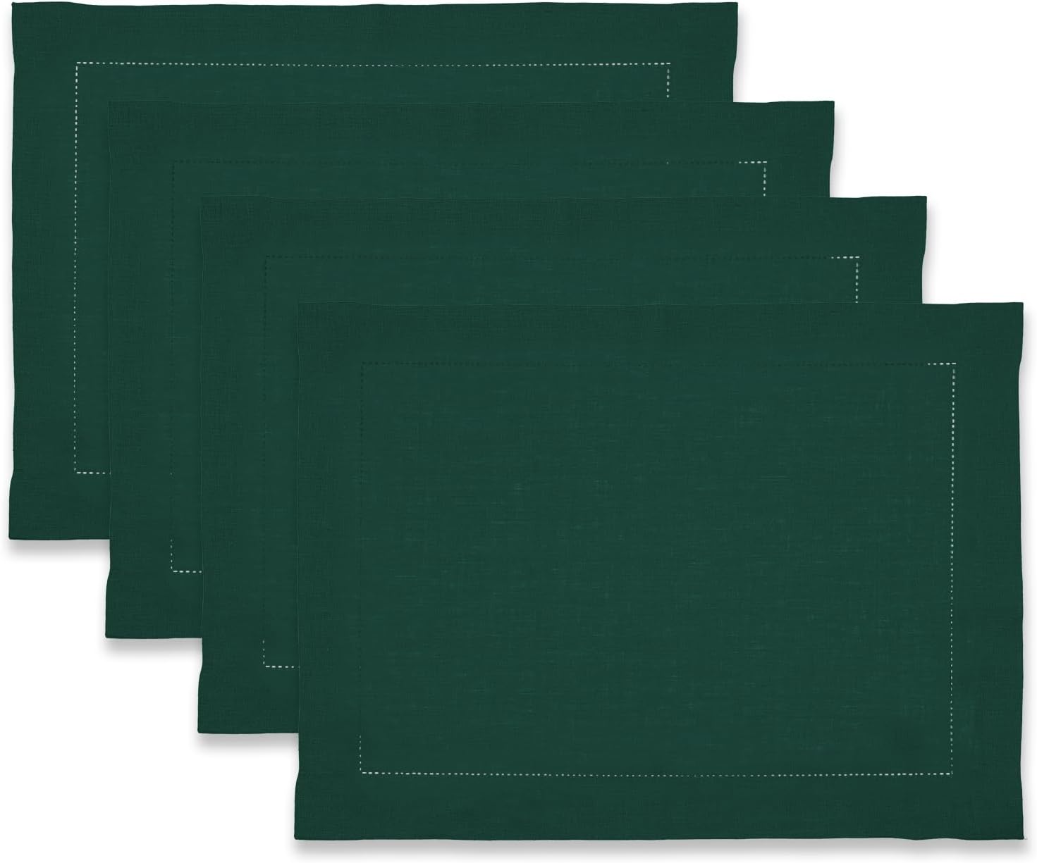 100% Pure Linen Green Placemats 14 x 19 Inch - Hemstitch Christmas Placemat Set of 4 - Cloth Fabric Napkins for Thanksgiving, Winter, New Year - Elara