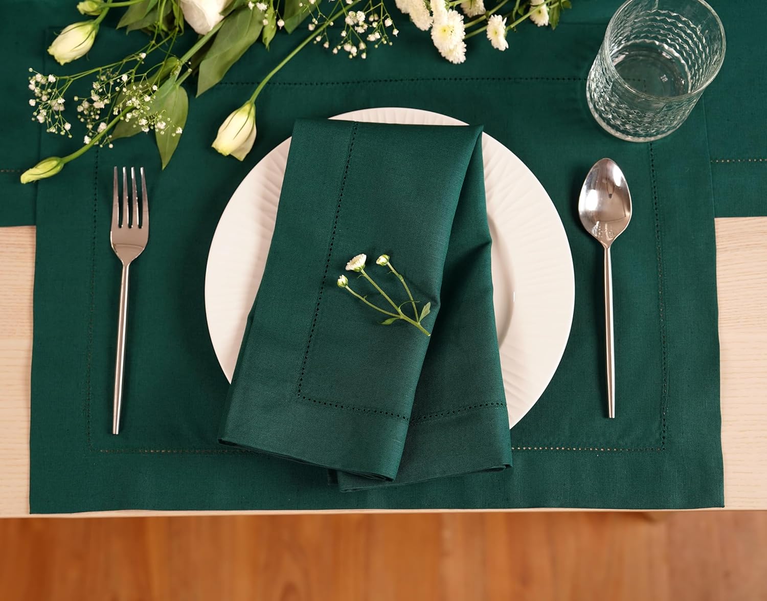- Hemstitch Placemats: Crafted from premium 100% linen fabric, offering natural elegance and sophistication, showcasing a refined hemstitch design for added charm and durability.