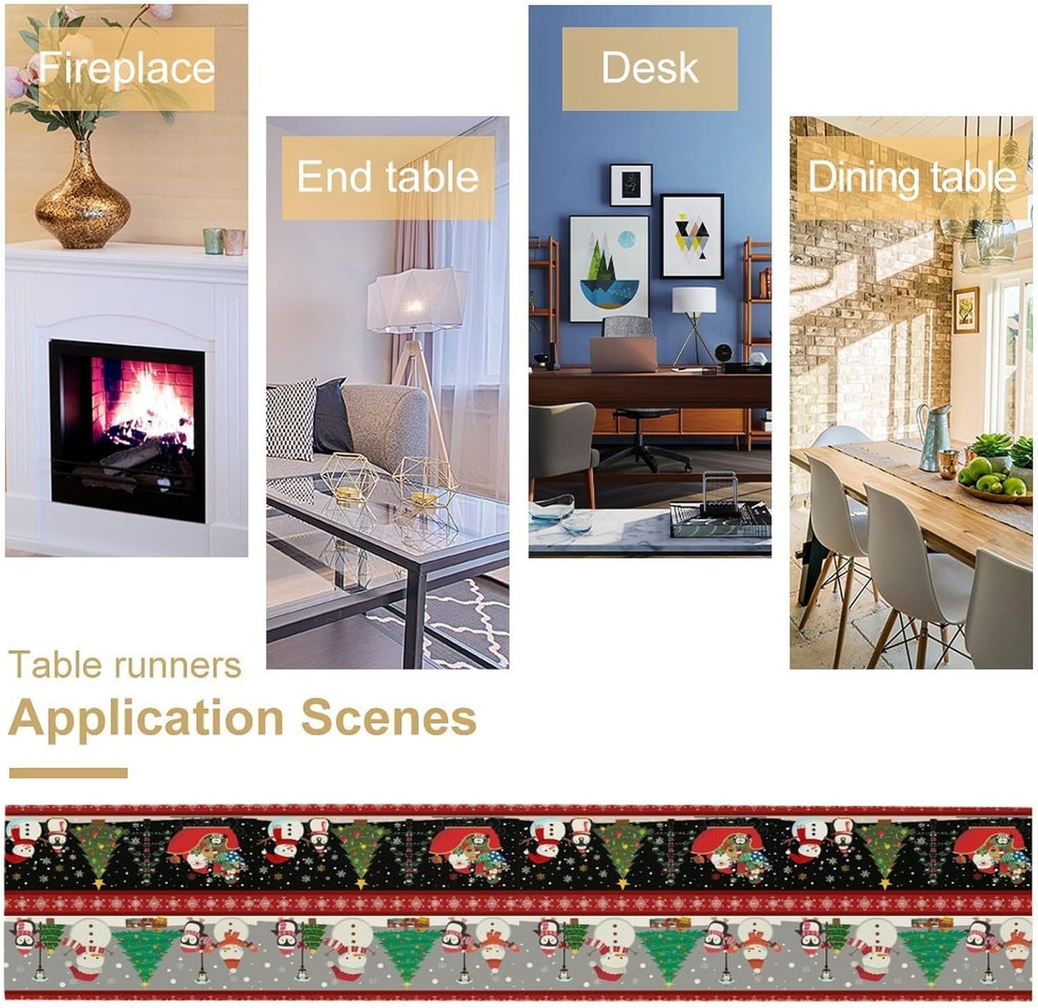Christmas Table Runner,Cartoon Snowman Tree Xmas Deer Elk Santa Claus Print Tablecloth Burlap for Hotel Indoors Outdoor Dining Room Kitchen Home Decor,W13X L80 in