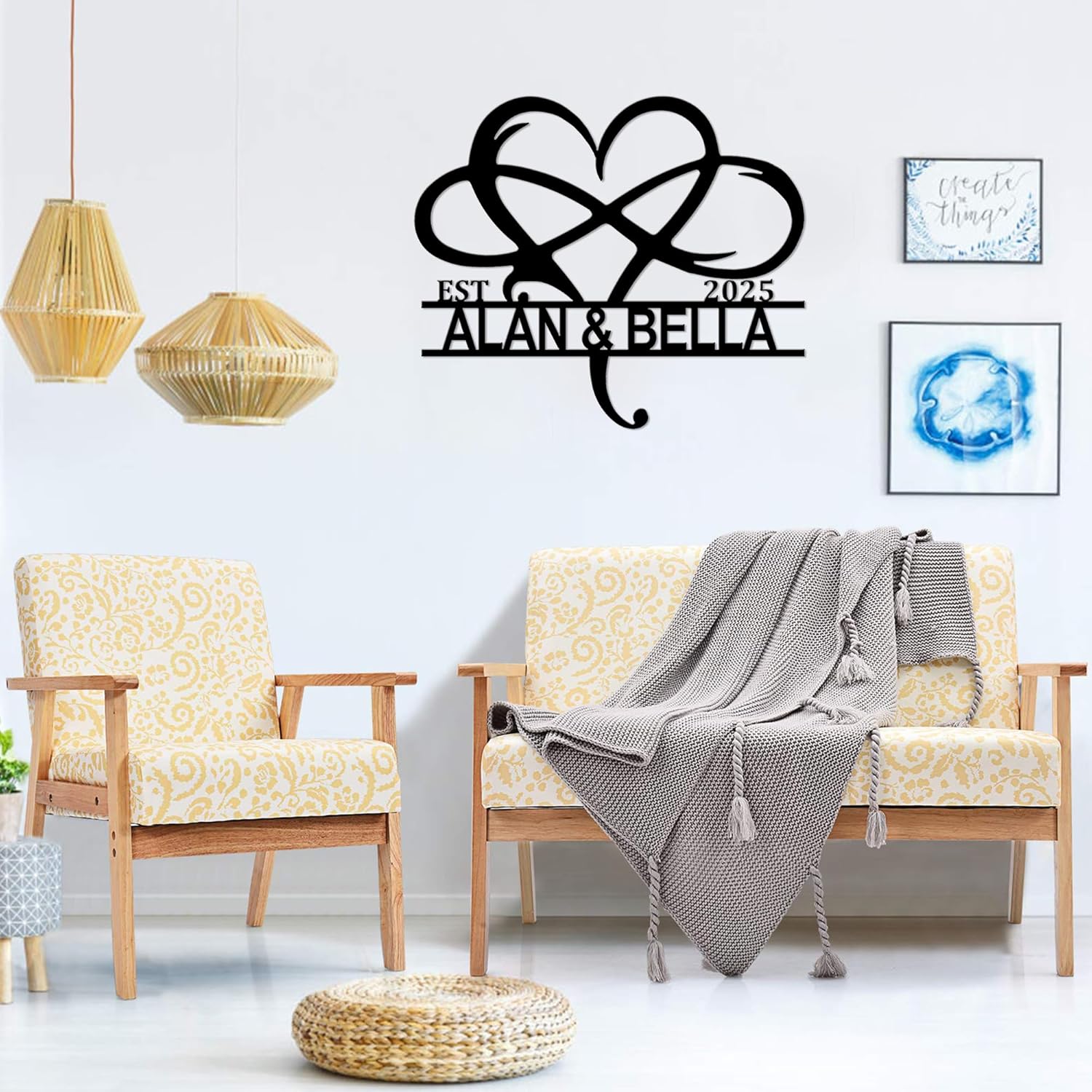 - CUSTOM MONOGRAM METAL SIGNS: Our metal signs are made in the USA, ship quickly. We offer a variety of designs and sizes to choose from. You can customize your name, last name, and anniversary date as a home decor sign, living room wall decor sign, or wedding sign. It is not only the perfect home decoration, but also an excellent way to showcase beautiful memories.