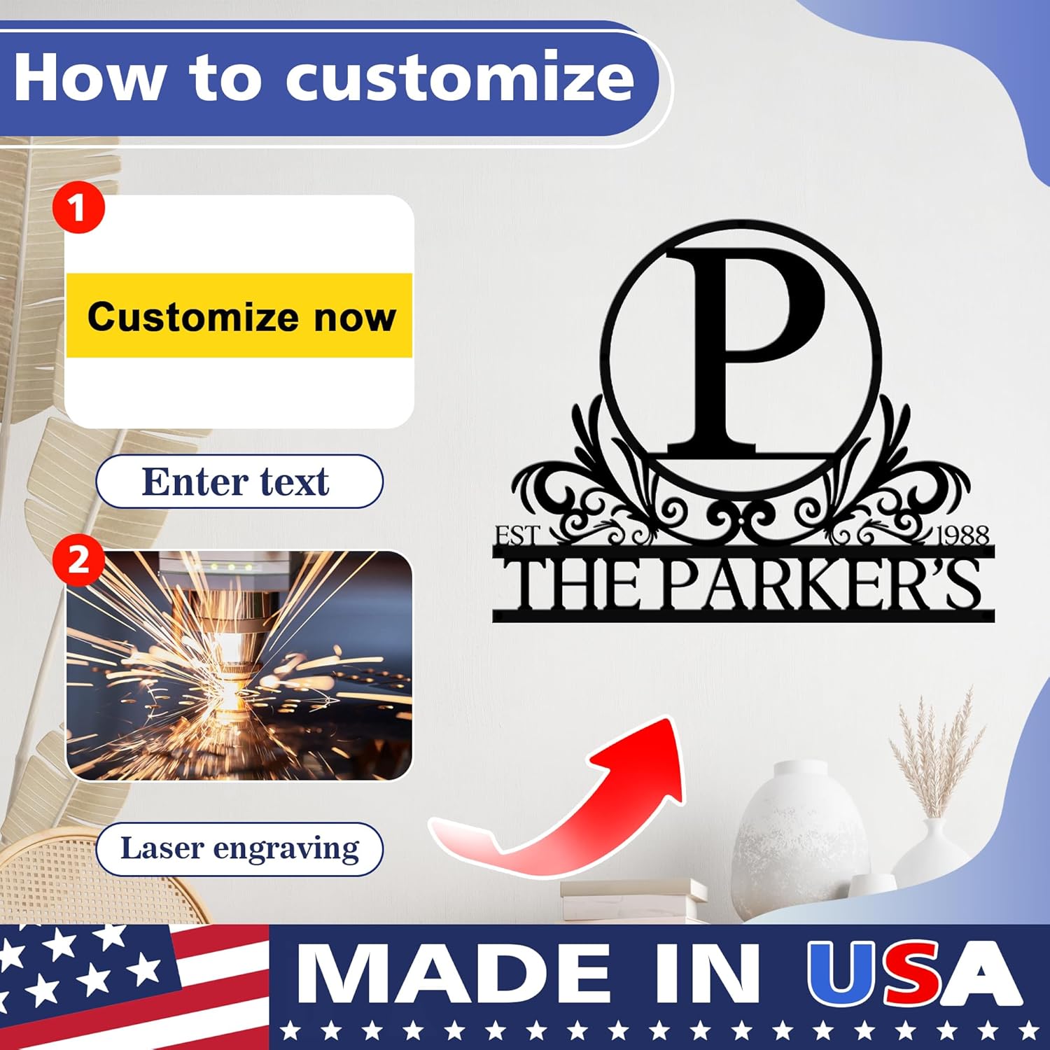 - CUSTOM MONOGRAM METAL SIGNS: Our metal signs are made in the USA, ship quickly. We offer a variety of designs and sizes to choose from. You can customize your name, last name, and anniversary date as a home decor sign, living room wall decor sign, or wedding sign. It is not only the perfect home decoration, but also an excellent way to showcase beautiful memories.